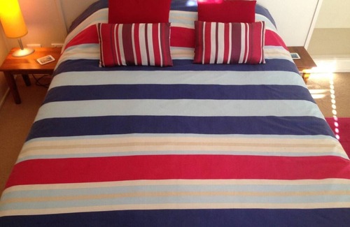 This secluded, fully self-contained, 2 bedroom guest house is a free-standing cabin with a separate entrance which backs onto a reserve of trees that meet the sky & play host to an array of birds, flora & fauna. Although quiet & peaceful, your only minutes’ drive to beautiful beaches, plenty of great eateries, shops, entertainment & nightlife. In addition to the 2 main bdrms, extra beds are 2 sofa lounges (makes queen bd)+1 single bed & 2 single camp beds comfy for children only (max 6 guests).