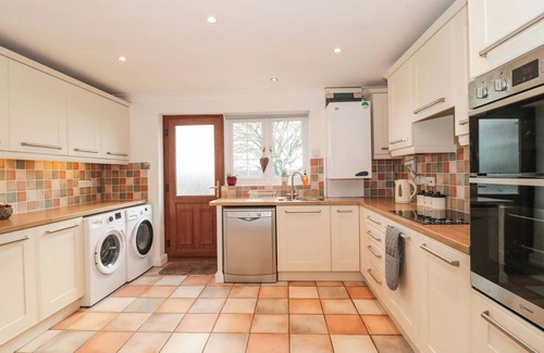 The living areas in this holiday home consist of a kitchen equipped with electric oven and hob, microwave, fridge/freezer, washing machine, tumble dryer and dishwasher, a living/dining room with Smart TV and dining seating for five and a conservatory. The bedrooms consist of a super-king-size (zip/link, can be twin on request) and a king-size serviced by a shower room. Outside there is private parking for two cars and a front garden overlooking the countryside. Within 3 miles there is a shop and 2.2 miles a pub. Two well-behaved dogs welcome with a 25GBP supplement - contact Sykes to pay. Sorry, no smoking. WiFi, fuel, power, bed linen and towels are all included in the price. Enclosed private terrace. Explore Somerset at Rainbow View. Note: The owner lives in the building adjoining this property. Note: There is shared access to the owner's outdoor swimming pool by prior request and at an extra charge. Note: There is an additional bed available for an extra guest. Note: Guests may bring there horses on prior arrangement with the owner. Please note: This property doesn't allow check-ins on Wednesday, Thursday or Friday