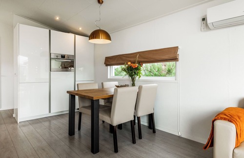 This elegant L-shaped holiday home, spanning 65m², is fully equipped with all the essentials for a comfortable stay:Two bedrooms, each with two single beds.A bathroom that includes a sink, walk-in shower, and a bathtub.A separate toilet for added convenience.A luxurious kitchen, featuring cooking facilities, an oven/combination microwave, dishwasher, and fridge/freezer. It also comes with a filter coffee maker, kettle, and toaster.Air conditioning to keep the space cool during the summer months.A bright and spacious living room with a see-through gas fireplace, perfect for relaxing in the winter, and a terrace for enjoying the warmer seasons.