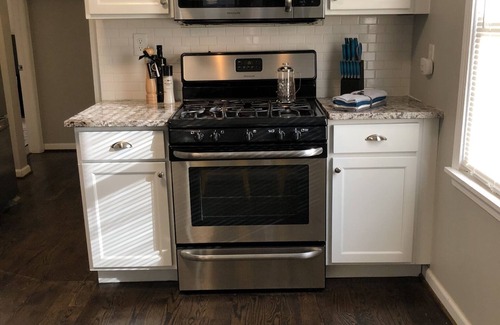 This is a complete two bedroom house with very comfortable memory foam beds. There is a screened in front porch and a backyard with a garage. The kitchen is fully stocked with dishes and utensils with plenty of counter space.