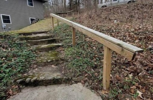 This is quite a few steps down from the parking area. The lake is down just a little farther from the cottage.