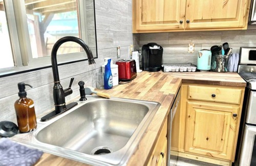 Escape to a peaceful retreat in this charming two-bedroom cottage, perfect for a family getaway or a group of friends looking to relax and unwind. Situated on a quiet street, the cottage has many modern updates and a fun, retro vibe that is sure to delight!