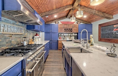 Kitchen/Dining with 4 bar stools around Island. Wine Frig. Dining Table that seats 10-12. Keurig.