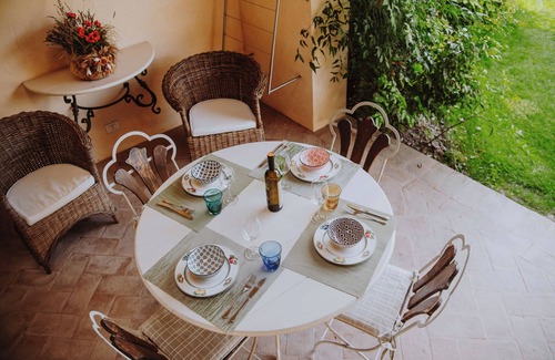 The "ZAFFIRO" apartment is located on the ground floor. , immersed in a splendid garden and surrounded by plantations of olive trees and vineyards, it is located within a prestigious farm dating back to between 600 and 700 where DOP oil and DOC wines of excellent quality are produced.