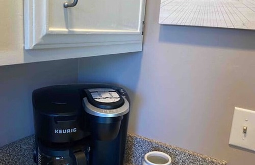 Fully equipped, stainless steel appliances, microwave, electric range, refrigerator with water/ice, cooking basics & spices, Keurig and drip coffee maker, toaster, kitchen table seats 6