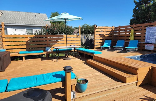 Three bedroom home with two additional sofa beds (one queen and one twin). Home has been beautifully updated. Enjoy the beach or relax and refresh by the pool. The beautiful bay beach is just a short 6 minute walk. The historic town of Cape May is within a 15 minute drive. The home features a newly installed plunge pool that is perfect to come back to and refresh after a day on the beach. Enjoy the house, enjoy the beach, enjoy the most beautiful bay sunsets. Nothing needed but food and clothing. Towels, bedding, beach chairs are all included. The home even includes a gym. Please note that for security and safety of our guests and for the property, there are three outdoor cameras. One above the garage, one above the front door and one at the back door overlooking the deck and pool.