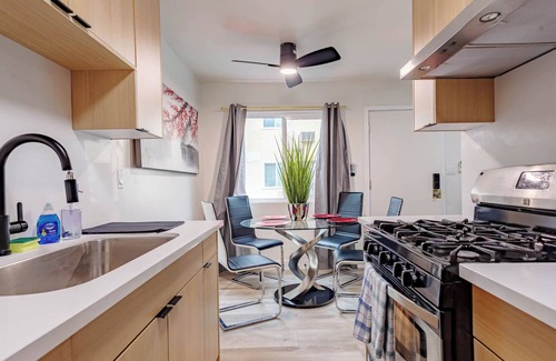 Enjoy a safe, cozy, and beautifully designed 2BR home on the ground floor in downtown Alhambra. This newly remodeled space offers a warm, inviting atmosphere with modern comforts, perfect for short and mid-term stays. Relax in a thoughtfully furnished living area, cook in a fully equipped kitchen, and rest in comfortable bedrooms. Conveniently located near shops, dining, and transit, this home is a peaceful retreat in a vibrant neighborhood.