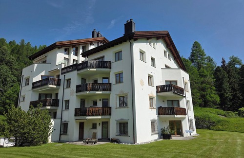 The apartment is nestled into the woods on the corner of Champfèr. It is ideal for a family or 3-4 couples. Located next to trees and the fields of the Silvaplana lake, it makes a perfect escape from the bustle of St Moritz, which is only a 7 minute drive away. The apartment was entirely re-designed and has all the luxury you would expect.