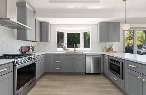 Welcome to your Walnut Creek escape—where mid-century style meets modern comfort and every detail is designed for easy living. Step inside this sunny 3-bedroom, 2-bath home and you’ll feel the stress melt away. The open-concept layout draws you straight to the heart of the house: a living room made for kicking back, with a plush couch, lounger, and a roaring fireplace for cozy evenings. Binge your favorites on the 72” smart TV with surround sound, or just lounge with a good book as sunlight spills in.Each bedroom is its own little retreat. The master features a king-sized bed you’ll never want to leave, plus a gorgeous en-suite bathroom with a walk-in shower surrounded by custom tile from floor to ceiling. The other bedrooms both have comfy queen beds, crisp linens, smart TVs, nightstands, dressers, and plenty of closet space to unpack and settle in.Mornings are easy with both bathrooms fully stocked—grab the provided shampoo, conditioner, body wash, and a blow dryer before heading out to explore. The kitchen and dining space flow seamlessly together, finished with high-end touches (so go ahead, cook up something special or just enjoy coffee at the breakfast bar).Located in a leafy neighborhood just minutes from parks, shops, and Walnut Creek’s buzzing downtown, this home sets you up for adventure or relaxation, your pick. Whether you’re here to wine and dine, hike, or just relax by the fire, you’ll find the perfect blend of California style and comfort waiting for you.Kick back, explore, and make yourself at home—this is the Walnut Creek retreat you’ve been searching for!
