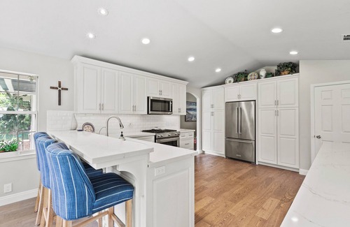 Located on nearly an acre in Templeton’s Peacock Ranch, Tanager is a remodeled 4BR/3BA home that blends comfort, privacy, and style. With vaulted ceilings, dual fireplaces, and a split-wing layout, it’s perfect for extended stays. Enjoy a chef’s kitchen with quartz counters and KitchenAid appliances, multiple patios, a lush lawn, fire pit, and games. EV-ready garage, fast WiFi, and premium finishes round out this peaceful retreat.