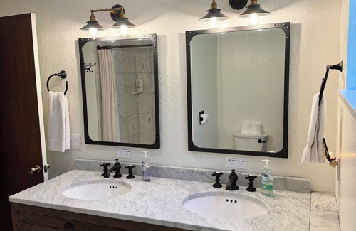 Get ready to relax in this delightful 3-bedroom cabin in Arnold. Nestled in a serene location, this brilliant property offers a tranquil escape for guests. Each bedroom features a comfortable king bed, ensuring a fabulous night's sleep. With amenities like central heating, A/C, a full size washer and dryer, a hair dryer, an iron, and high speed WiFi, your stay will be convenient and enjoyable. The 2 bathrooms are spacious with double vanities, well appointed showers with one a shower over tub. Whether you're exploring the nearby attractions or simply unwinding in the cozy living spaces, this delightful cabin provides the perfect retreat. We look forward to hosting you at our place.