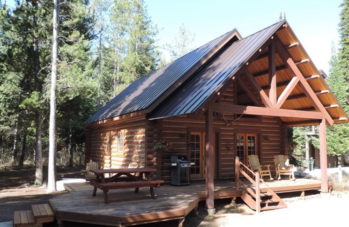 This newly-remodeled log cabin is located just at the base of the mountains in Alpine, Wyoming! This very comfortable 2 bedroom cabin has an updated kitchen and a large deck that is great for a BBQ, drinks, or relaxing. It's open lay-out creates a bright sunny living space with comfortable furnishings. Large loft area has television and seating and a desk.
