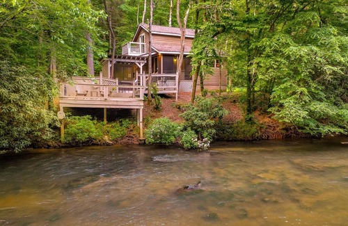 This one of a kind River Cottage is so adorable you may never want to leave! The interior is cozy and inviting from the beautifully decorated living area with a gas burning stove to the charming Master Suite with a private bath and balcony overlooking the pristine Ellijay River. A flat-screen TV with a DVD player and wireless DSL compliment your interior surroundings. Grab your favorite beverage and walk out the back door to your own private oasis including a luxury hot tub and deck that overhangs the river's edge. This cottage is conveniently located between Ellijay and Blue Ridge allowing for plenty of adventure and unique shopping. Whether it`s a romantic rendezvous you`re hoping for or just a peaceful retreat to relax, you will be overjoyed to have found this treasure on the river!