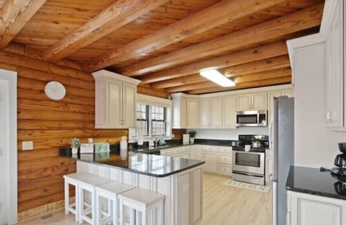 This 5BR/3BA will be yours to enjoy! The nicely furnished single-family log cabin can comfortably accommodate up to 12 guests. Read more about each space and included amenities below: