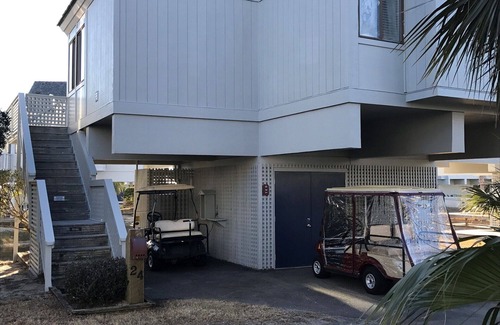 On remote Bald Head Island, our villa is in the perfect location. In one direction it's a 2-minute stroll to the beach, and in the other direction, it is a 1-minute walk to Bald Head Island Club with access to golf, tennis, fitness center, croquet, pool, water park and slide tower, playground, volleyball, fine and casual dining. A temporary full membership including golf privileges is available with your rental for an additional fee. You can walk to the several Club restaurants, tennis, pool and water play, playground, fitness center, and even croquet! Our villa also offers the option of a Shoals Club membership with an additional fee. The Shoals Club provides direct beach access, 4 additional dining and fitness options, and pool access.