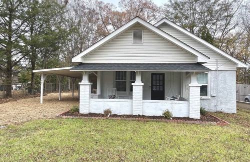 Enjoy a quaint peaceful stay in this newly renovated shiplap farmhouse home located in downtown Calera, convenient to all the local amenities, shops & restaurants and also the close by towns of Montevallo, Alabaster, Pelham, Columbiana, Jamison & Thorsby. Inside the home features a cozy living room with sectional couch & chair, a spacious open kitchen & dining, the main bedroom with a Queen Bed and a separate living area with a fold out Futon Couch, a second bedroom with Queen Bed, a full bathroom with sliding privacy barn door and a large laundry room with washer & dryer. Outside the home you can enjoy sitting on the front porch drinking your Keurig coffee, pick fresh pecans from the pecan tree in the front yard, play a game of darts on the covered back porch or enjoy toasting marshmallows around the stone firepit in the oversized back yard. So many local attractions to experience such as the Calera Eagles Football & Baseball games, several Disc Golf courses, Heart of Dixie Railroad Museum & the North Pole Express at Christmas Time and so much more.