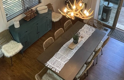 Everything you need is here. Walk through the front door into the main level that features vaulted ceilings with an open-concept living space with fully stocked kitchen, a large, expandable dining table that will seat 8, wood stove for cold nights, 65” Smart TV with Xfinity cable, high speed WiFi internet, and so much more. Also on the main floor is 2 guest rooms with queen beds, as well as a full bath. Upstairs is a loft with seating area, the large master bedroom with king bed, and another full bath. Downstairs is the “kid’s lair” with sectional sofa and 55” Smart TV for streaming your favorite streaming services or bring your own video game console (no cable service on this TV), 2 bunk beds with twins over doubles, half bath with laundry, and table-top retro video game with 450 of your favorite “old school” video games.