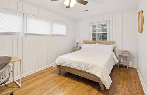 Located in a charming neighborhood close to shopping and restaurants. Perfect for the traveling businessperson(s). Secure, coded lock on bedroom door with access to communal bathroom and kitchen area. Each room is equipped with a smart TV and laptop friendly area. All linens (including towels) and basic cooking, bathing and bathroom essentials provided. Great place to rest and relax after a long day's work.