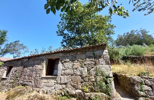 Two stone houses, one with living room, kitchen, bathroom and two bedrooms and the other with two bedrooms and toilet, located in a beautiful garden with trees and views of the bay of Carnota.