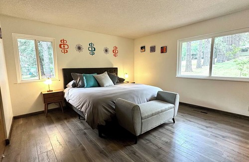 Enjoy modern conveniences with a retro flare in our Trinity River-front home centrally located within 15 minutes of Weaverville and 40 minutes of Redding.