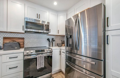 The fully-equipped kitchen includes: Range with WiFi, Over-the-Range Microwave, Dishwasher, French Door Refrigerator with double drawers, Ninja Blender, Toaster, Nespresso machine and all your cooking needs (dishware, glassware, cookware, utensils), including an assortment of spices. Recently added a new electric grill on the patio (BBQ utensils also provided).