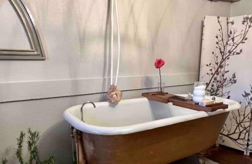 The ‘Wine Cellar’ is 1300 SF Private Suite sprawling the entire ground floor of River Street’s historic Victorian. Private Entrance/Private Drive with two double beds in master, one twin bed in alcove, kitchenette/spa area with vintage claw foot tub, living area, private shower!!