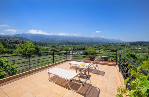 All guests can enjoy a very nice private veranda with views to the west, the countryside of Crete and the "white mountains". A shaded dining area and two sun loungers are provided.