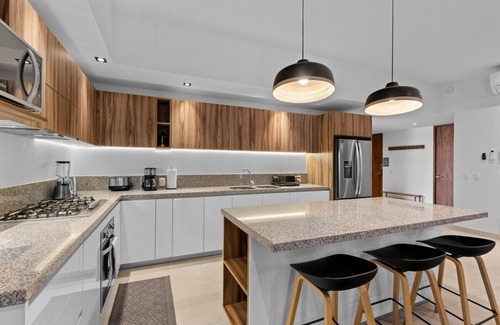Relax on a spacious terrace in an immaculate 2BR corner unit with rooftop infinity pool and breathtaking views of the ocean and surrounding mountains. Nestled in the heart of the Versalles foodie neighborhood, you'll enjoy easy access to a diverse range of restaurants and eateries. The central location provides easy access to groceries, vibrant shopping areas, medical facilities and popular tourist destinations. Pristine beaches and gourmet restaurants a short walk away.