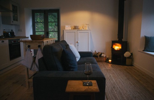 The living area has a two seater sofa, a beautiful Charnwood wood-burner, a large window seat, a smart TV with built in DVD player and a bluetooth speaker to listen to music, everything you need to cosy up on those cold winter nights.
