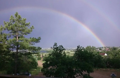 Romantic retreat, quiet, glorious views, abundant wildlife. 1960's cabin with French doors opening to deck, cathedral ceilings, wood-burning stove. Big loft bedroom features new queen platform bed with foam mattress and five windows--like sleeping in a tree house. fully stocked chef's kitchen, newly remodeled bath with shower/soaking tub. Washer/dryer. Two decks, private drive. Forest home only minutes from hiking, fishing, golfing. Good roads. 30 minutes from Pueblo or Trinidad, Colorado. high speed 25mbps internet, HDTV.