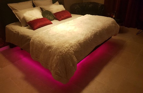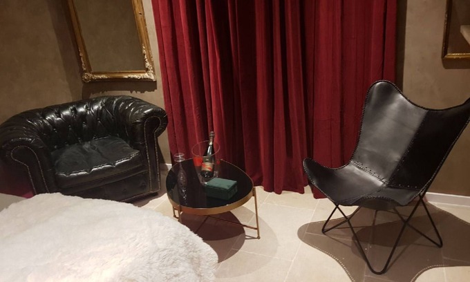 Enjoy a baroque style room that will end up charming your loved one. A jacuzzi, a king size bed, dim and colorful lights for an erotic atmosphere.