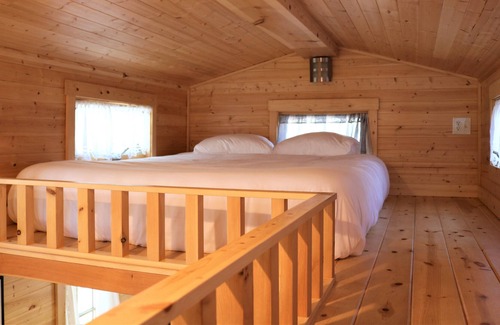 The Rose & Crown, a Tumbleweed Tiny Towable Elm has been updated and redecorated in December of 2022. It boasts 2 cozy lofts for sleeping, one loft has stairs leading up and the other loft with ladder access. Both lofts are equipped with a 5 layer memory foam queen mattress with individual pocket spring bases that allows the support of a spring mattress but with the comfort of memory foam, with all the needed pillows and linens for a comfortable night sleep. It has a fully equipped kitchen with refrigerator, microwave, Keurig coffee maker, propane stove and any necessities needed to cook a home cooked meal! The bathroom features a walk in shower, sink, rv style toilet and mirror with extending arm perfect for applying makeup or shaving. Unique to the R&C is a tankless water heater. What does this mean? It means you never run out of hot water, so no one gets stuck taking a cold shower!