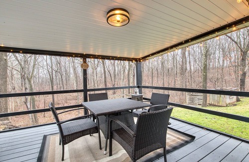And of course we must mention the outdoor spaces ~ enjoy your morning coffee on the covered front porch or the back screened porch. The front porch will transport you back to a simpler time as you enjoy a beverage on the front porch swing or rocking in the rocker. The back porch is great for your evening meal and don't worry about mosquitos because its screened in. You may even see a squirrel or two playing in the trees!