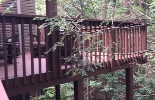 If you like peaceful mountain surroundings, this place is for you. We are on a dead end street and in the summer cannot see the neighbors from the house. There is a stream that runs down the side of our property which can be heard from the decks. On the first floor outside, we have a cement slab with a gas fireplace. Very relaxing.