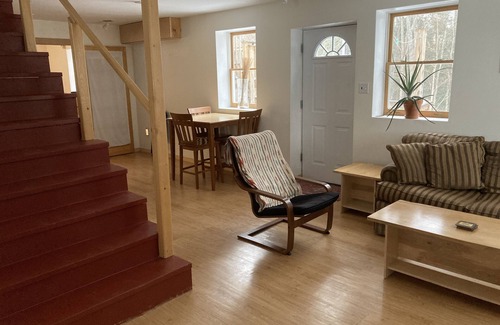 Enjoy the winter in beautiful Vermont. The guest area is the entire main floor of a large house with my quiet second home above. Private entrance, 2 bedrooms, full bathroom with washer and dryer, speedy fiber optic internet. The open kitchen has full sized stove and fridge with good cookware and appliances, adjacent to a large open living area. On a paved scenic road. Go up to Silver Lake for a swim, head out on any of the back roads for a run or a ride.