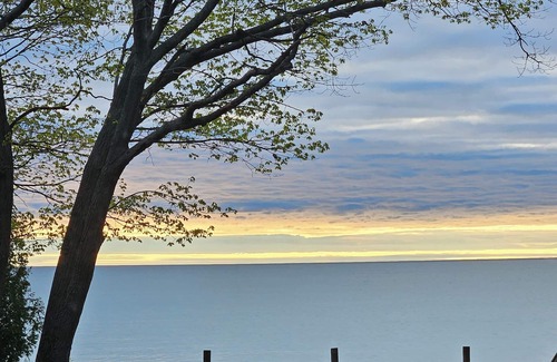 This charming cabin near Au Gres is the perfect retreat for guests traveling with pets (refundable damage deposit applies). Escape the hustle and bustle with your furry friends and relax in this 80-year-old log cabin, without giving up modern amenities such as furnace heating, AC unit, coffee bar and Wi-Fi. With 2 queen beds, 1 full bed, 1 twin bed and a dog bed, this cozy getaway offers space for the whole family or a friends weekend. Enjoy a peaceful campfire and sounds of Lake Huron waves lapping the beach just 200 yards away - tranquility while staying close to fun, adventure and activities. Take your dogs down the gravel road to the beach for a dip in the lake and a run in the sand! Or, watch a beautiful sunrise over the lake from the front yard before heading across the highway with your foursome for an early tee time. Feel free to reach out to us during your stay - we're happy to suggest local spots to explore.