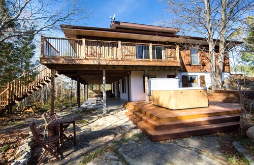 Our place offers peace and tranquility protected by towering trees overlooking Mississippi river rapids. It is a rustic post and beam cottage with all modern amenities and a large walkaround patio. Even inside the nature embraces and surrounds you thanks to our large panoramic windows.
