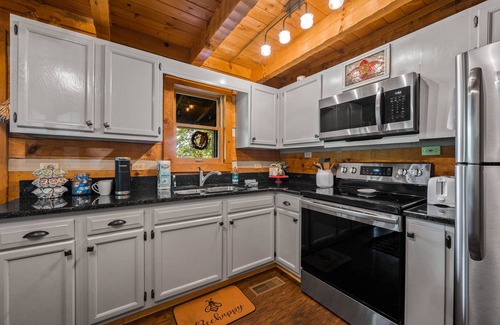 Come and unwind at our authentic log cabin with beautiful hand-hewed beams. Relax on the covered deck or in the hot tub and enjoy the view of the Smoky Mountains and Wears Valley, cuddle in front of the gas log fireplace and cozy up in the open loft queen size bed. Located on Cove Mountain in Wears Valley, you’ll be perfectly situated close to all the attractions and restaurants, yet private enough to relax, unwind and enjoy the view. Meant To Bee is a 1 bedroom, 1.5 bathroom loft style cabin located 4.4 miles to the Metcalf Bottoms Smoky Mountain National Park entrance, 10 miles to Pigeon Forge, 14 miles to Dollywood, and 17 miles to Gatlinburg. GPS directions will bring you right to the cabin. The road is a typical mountain road, curvy but not too steep. Complete with linens, towels, dishes, pots&pans, drip coffee maker and Keurig, toaster, and new kitchen appliances. High Speed internet, a Roku device, and DVD/ Blue-ray player are provided.