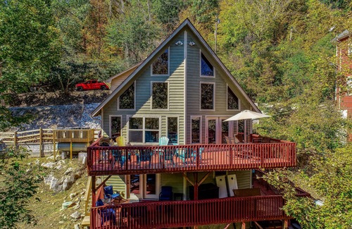 When you're ready to unwind for the day, head back to your retreat where a private river-view hot tub is calling your name! Truly the epitome of indoor/outdoor living, find yourself effortlessly moving between spaces and enjoying the fresh Tennessee air while doing so. The two large, water-facing decks offer plenty of seating options, a hard-lined grill, a hard-lined propane firepit, kayaks, and a relaxing porch swing.