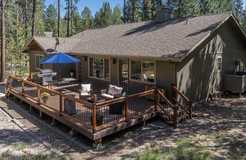 Experience a luxurious and rustic escape at our 3BR/2BA Sunriver area home. Just a 2 minute walk to the Deschutes River, 10 minutes into Sunriver Village for shopping and Dining, and 30 minutes to the slopes at Mt. Bachelor. Enjoy nature views, a cozy fireplace, large windows and over-sized couches in the spacious living area. Each well-appointed bedroom features comfortable mattresses and plush linens and can sleep up to seven guests. Unwind on the furnished outdoor deck complete with a gas grill. Our fully equipped kitchen and dining area are perfect for entertaining. Our home is professionally cleaned and sanitized for your safety.