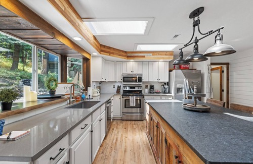 Inside you'll find two spacious living areas each with large Smart TVs and each with its own cozy wood fireplace, perfect for gathering with family and friends. The fully equipped kitchen is the perfect place for the chef in your party to indulge in their passion for cooking and baking treats for your group.