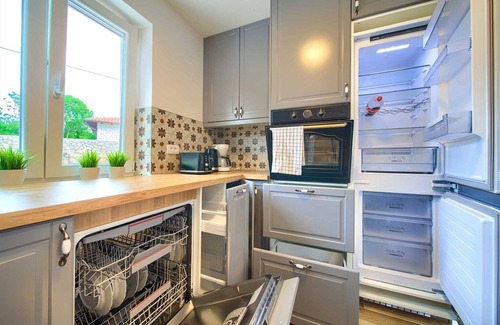 Villa Zala is a stunning five-star villa with a heated pool, accommodating up to six guests. Located in the tranquil and traditional village of Rasopasno on the island of Krk, Villa Zala combines modern comforts with charming traditional design, offering a spacious and welcoming atmosphere that feels like home.