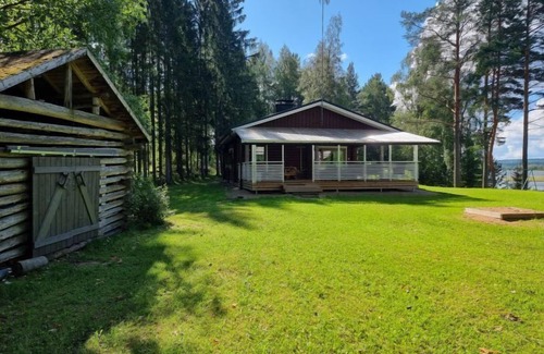 An idyllic round log cabin (built in 1998) in the middle of beautiful nature. The sheltered plot borders the clear water of Niinivesi.