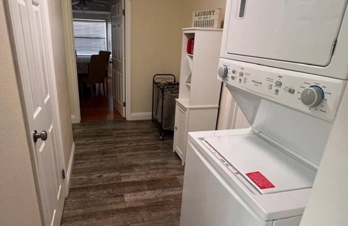 The house is supper clean and there is everything you need in the kitchen and do your own cooking and there is laundry in the hallway as well!feel right at home with the safest and quietest place !