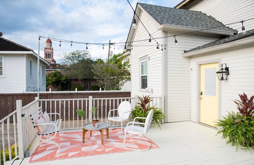 This beautifully furnished historic home features 5 Bedrooms and 2.5 bathrooms. The downstairs space features a large open living area with a smart TV, a dining room (complete with a beautiful John James Audobon accent wall) that opens to the well appointed and fully stocked kitchen. The master bedroom and its massive en suite bathroom with a claw foot tub is the perfect place to relax and the additional downstairs bedroom featuring a twin daybed and twin trundle doubles as the perfect place to work (although we hope you don't have to!) The upstairs space features a large additional living area complete with Smart TV, three additional bedrooms and a large full bathroom. Outside, the large front porch is an ideal space to rock or swing the day away while sipping a cold beverage and taking it all in, and the huge rear deck is the perfect place to grill, relax and entertain! The home has some smart features as well! Enjoy Alexa, as well as surround sound entertainment with Sonos. All TV’s are smart and equipped with streaming services as well as digital cable so you never miss a game! Free high speed WiFi is also provided. This home has been updated with every modern convenience while maintaining the charm of its original design and layout. Come and stay with us at the Saint John Inn and experience the best that Downtown Lafayette has to offer!