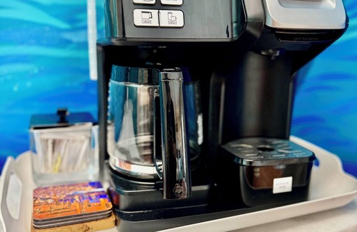 Included are a mini-fridge, microwave, electric skillet, coffee maker and coffee bean grinder, wifi, and television with HBO Max and Hulu. We have a play kitchen for children and games for everyone.