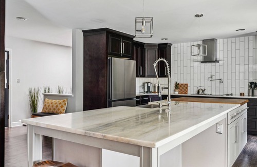Fully equipped chef’s kitchen with modern appliances and island seating