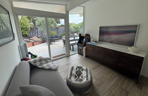 4 bedroom 2 bath Eichler home in Lucas Valley for rent this summer. Modern and minimal while also kid friendly! Full backyard with seating, bbq, firepit and turf. Hiking trails right outside backyard.
