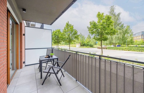 The bright apartment offers a comfortable stay for four people. It is located on the first floor. The interior is decorated in an elegant style, and accessories in dark colors give it a unique character. The apartment has four beds - two in a cozy bedroom with a comfortable bed and two on a sofa bed located in the living room. The kitchenette includes an induction hob, an oven with microwave function and a dishwasher. Thanks to the comprehensive equipment, it is possible to prepare delicious home-cooked meals. Guests can enjoy a furnished balcony, ideal for morning coffee or evening relaxation. The apartment is perfectly suited for remote work - the living room has a desk along with a comfortable chair, and in all rooms you can connect to high-speed WiFi. An additional multimedia facility is a TV with SmartTV+ function. In the bathroom, you'll find a shower, a special set of welcome toiletries and a washer-dryer for comfort during a longer stay. Another advantage is the possibility of staying with pets, so you can enjoy a relaxing stay in the company of your pet. The apartment also comes with a parking space in the underground garage.