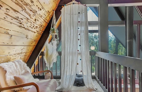 Scenic A-frame - Hot Tub, Basketball Court, Treehouse, Outdoor theater! is located in Grass Valley. Scenic A-frame - Hot Tub, Basketball Court, Treehouse, Outdoor theater! provides accommodation, featuring Kitchen, Balcony/Terrace, Bedding/Linens, among other amenities. This Ski Chalet features Kitchen, Balcony/Terrace, Bedding/Linens, to make your stay a comfortable one.
